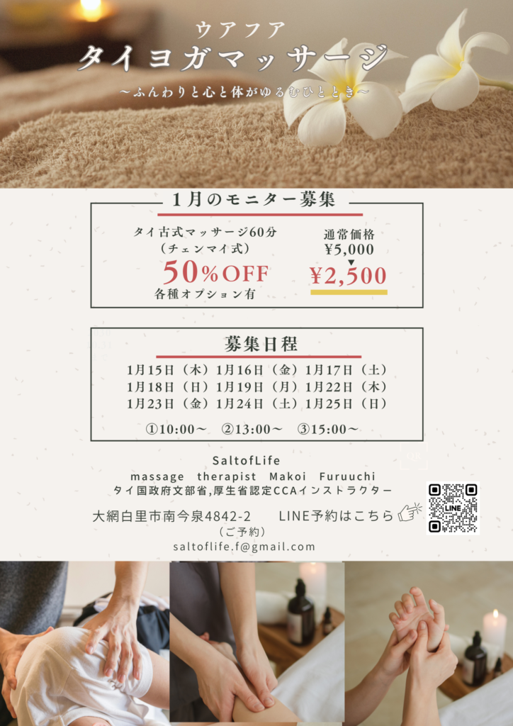 2026年1月よりタイヨガマッサージのご予約受付開始致します
