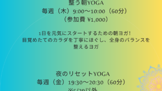 YOGA 2026年(5月)畳ヨガ情報(ご予約受付中) 千葉県大網白里市にある畳ヨガスタジオSaltofLifeのWebサイトです。2026年5月の畳ヨガ情報のお知らせ。ヨガ体験、ビギナー、初心者、男性、大歓迎です。どなたでもお気軽にヨガ教室にご参加下さい。楽しく心地よく体を動かし、こころをリセットしましょう 2026.04.19 YOGAお知らせ・News